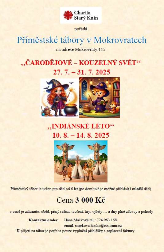 I v letošním roce pro vás a vaše děti připravujeme příměstské tábory v Mokrovratech.