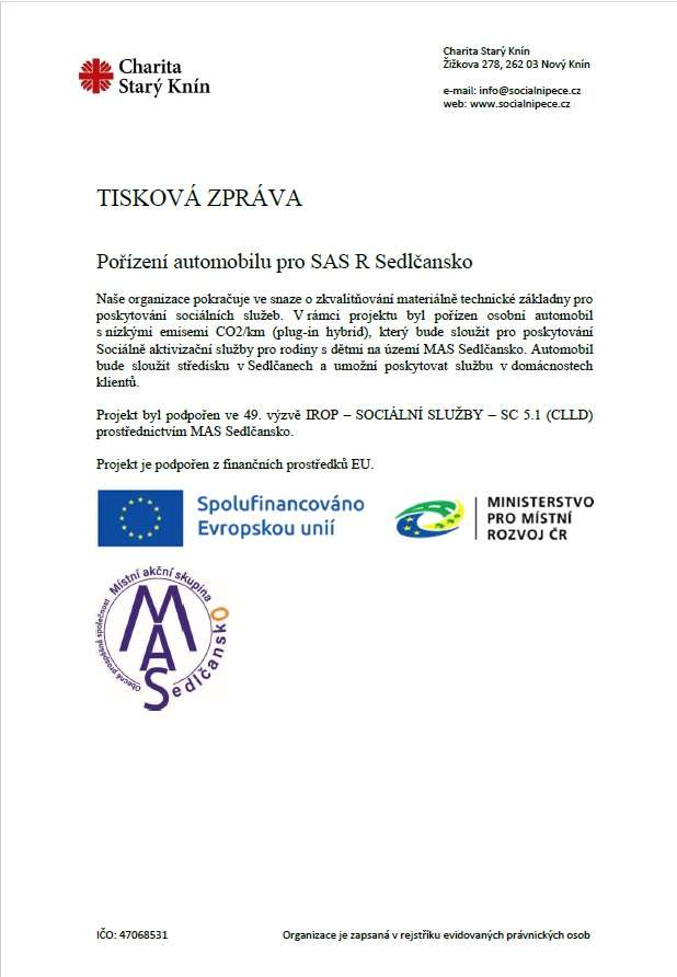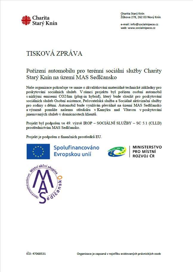 Poděkování patří vedoucí střediska paní Mgr. Bobovské a celé „charitě“, kteří perfektně práci organizují a umožňují tak rodinným příslušníkům ponechat si v domácí péči těžce nemocného člena rodiny.